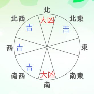 ※日の方位、北東、南西が凶の日。出発の日と避けて。