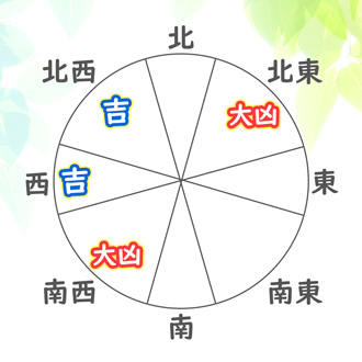 ※日の方位、北西、が凶の日。出発の日としてできれば避けたい❌