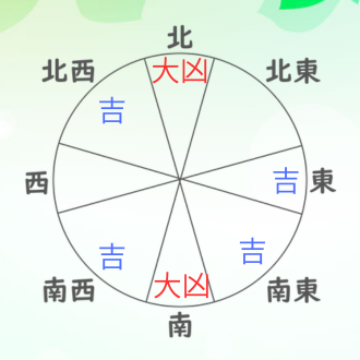 ※日の方位、北東、南西が凶の日。出発の日と避けて。