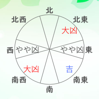 北東✕、南西✕、は凶✕