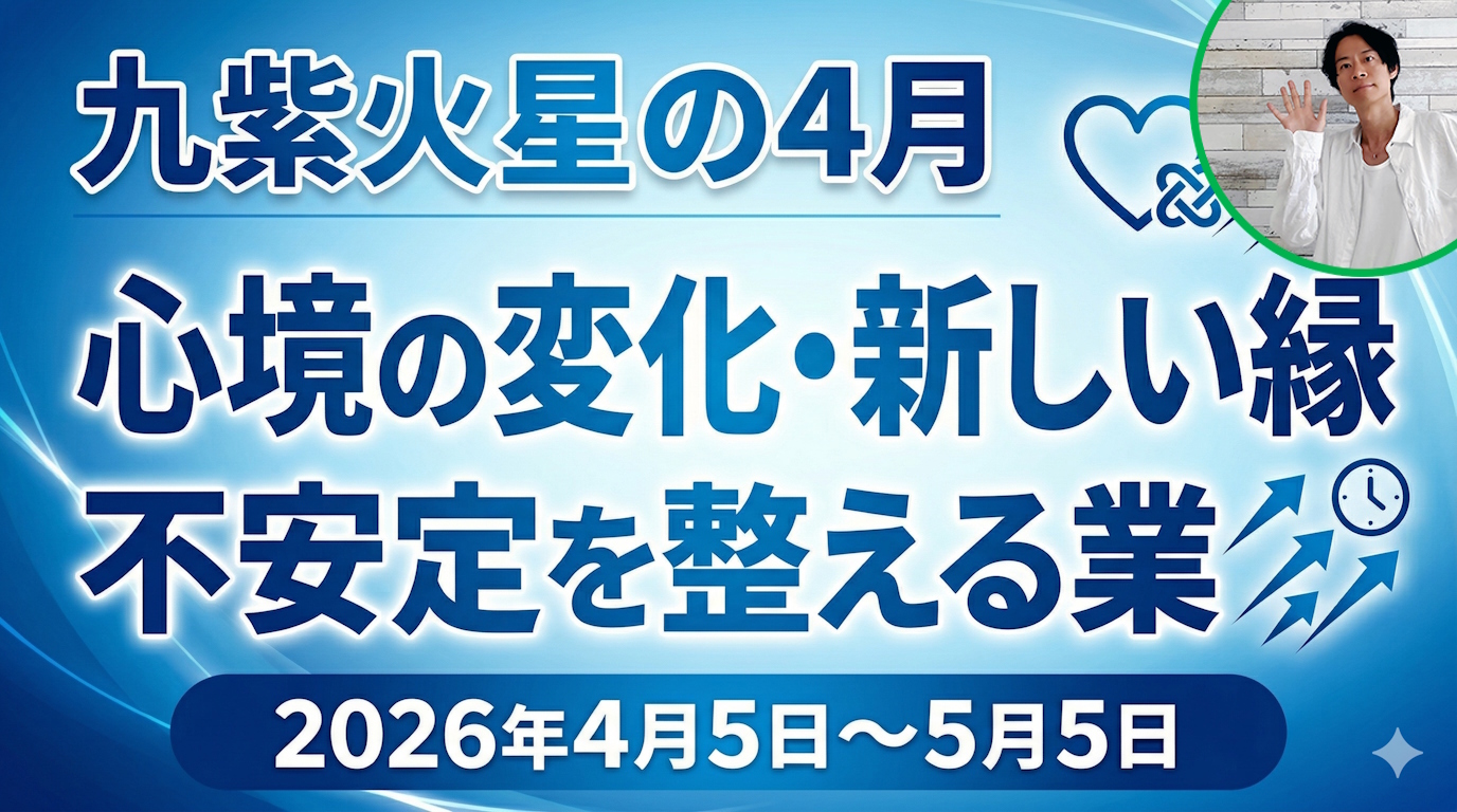 九紫火星は、年間を通して、旅行・転居の話が出やすい2026。新幹線か飛行機に必ず乗る。もしくは転居。この4月、外に出たい願望が上がる↑